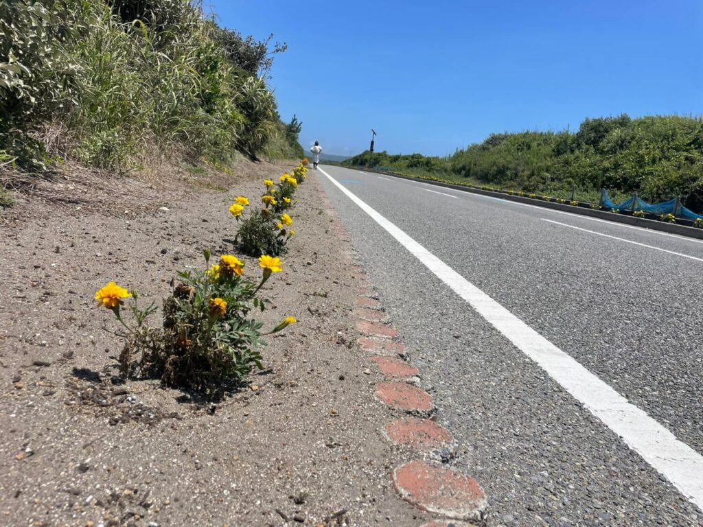 館山市下町交差点から南房総市和田町まで、約46kmは「房総フラワーライン」と呼ばれる海岸線の道路を走ります。時期的にあまり花は咲いていませんでしたが、「日本の道百選」にも選ばれているそうです。日差しを遮るものがないため暑くて過酷ですが、時折右手側から広い海を眺めることができます。