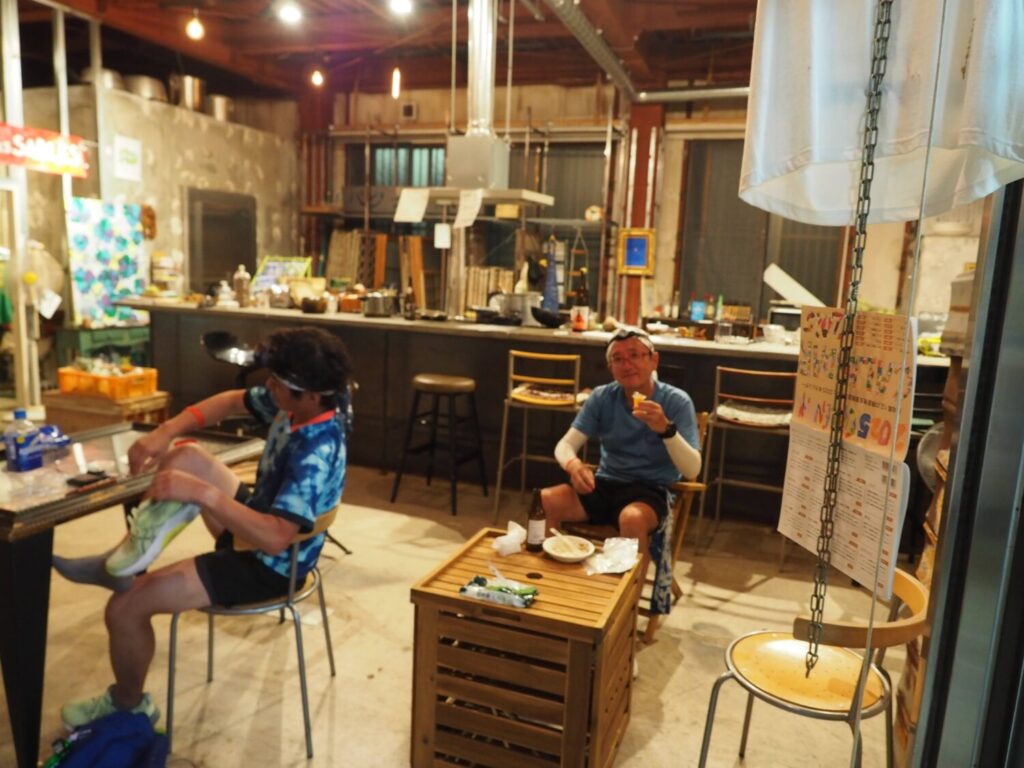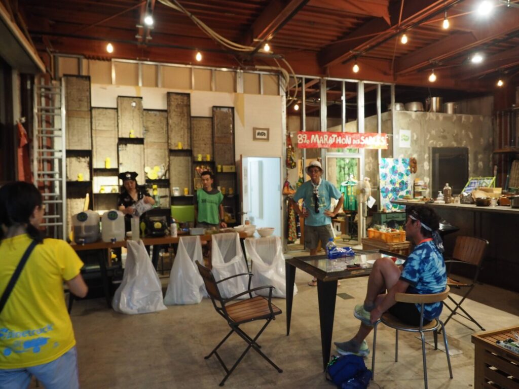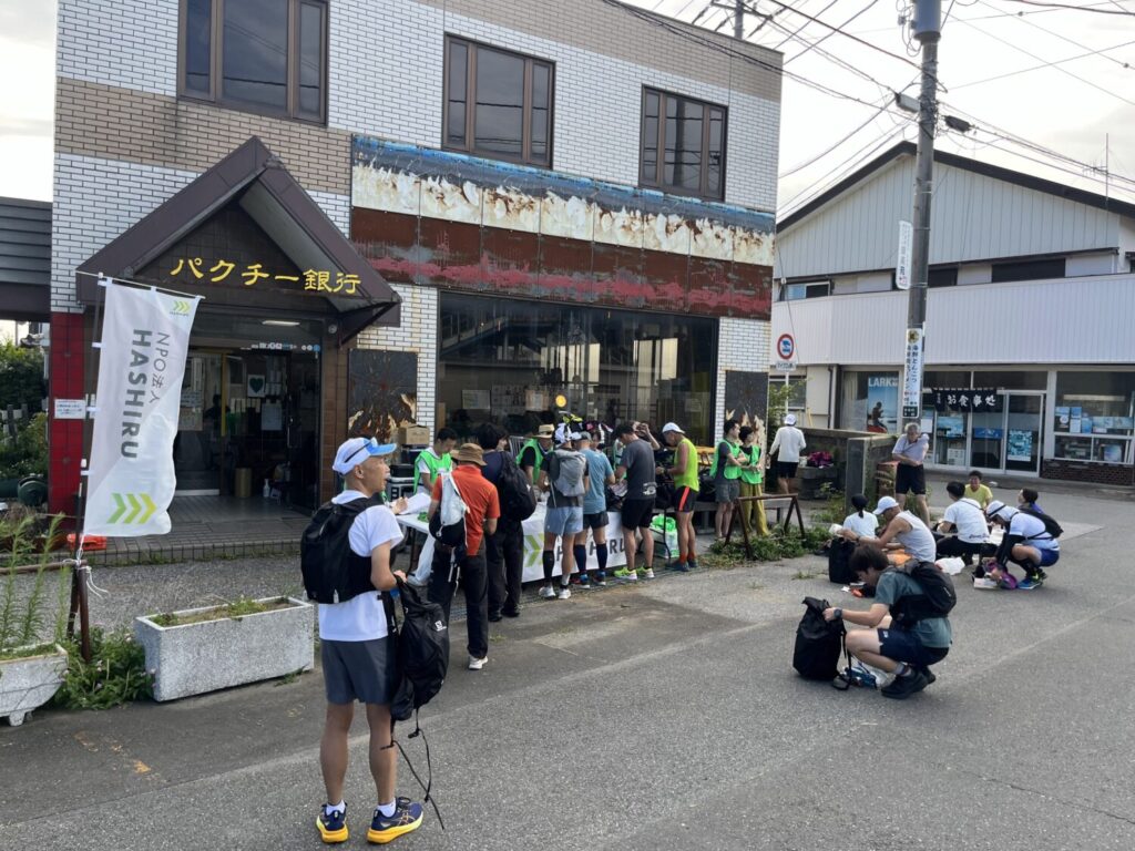 そんな中、パクチー銀行には210kmに出場するランナーが集まっていました。210kmは制限時間が長く、300kmのランナーがほとんど到着しないうちにスタートしていきます。まるで遠足にでも出かけるように笑顔いっぱいのランナーですが、こちらも過酷であることに変わりはありません。スタートが夕方なので、早めについて観光やグルメを楽しんだ方もいたようです。