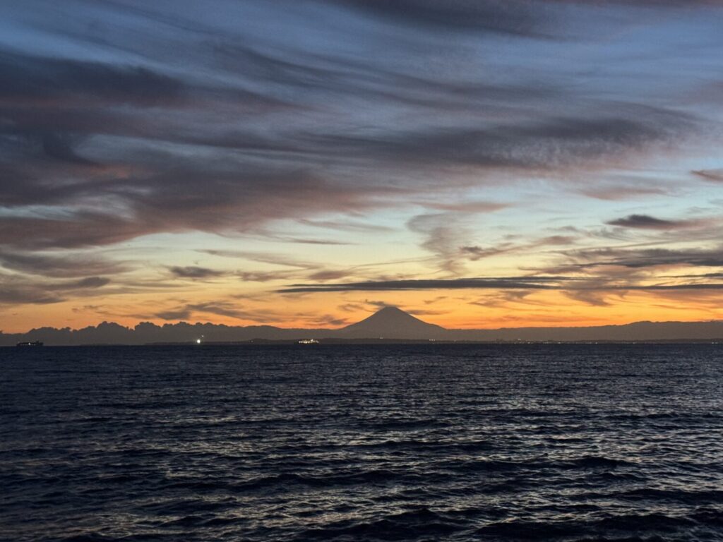 暑さの一方で天気に恵まれたため、富津岬からは美しい夕焼けと共に富士山が見られました。多くのランナーが、この絶景を目にして癒されたことでしょう。富津岬は半島の東に飛び出した形状となっており、海をはさんですぐ目の前には八景島や横須賀などの街が見られました。