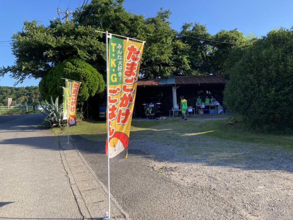 一宮付近からは、海沿いを離れて内陸へと向かいます。そんな中で待ち構えていたのが、「たまごかけごはん」と書かれた旗でした。こちらは、約258.6kmに位置するエイドステーション「みのりファーム」です。