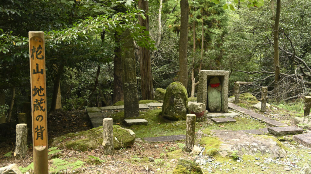 花山・地蔵の背は、路肩に佇む石仏です。地蔵が山の背に位置していることから、その名がつけられたと考えられています。