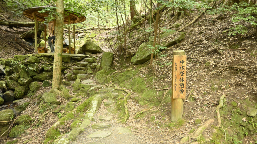 遊歩道の途中には、小規模な休憩場所や見どころとなるスポット、3か所の山の交番が設けられています。苔むした石畳が長い年月の流れを感じさせ、原始林の深い自然と古都奈良の歴史が合わさった、趣のあるハイキングを楽しめます。