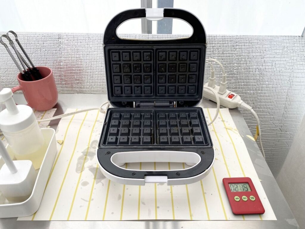 園内には、フリードリンクとワッフルの食べ放題コーナーも併設されています。焼きたてのワッフルに生クリームをのせ、自分で摘んだいちごをトッピングすれば、贅沢ないちごワッフルの完成!