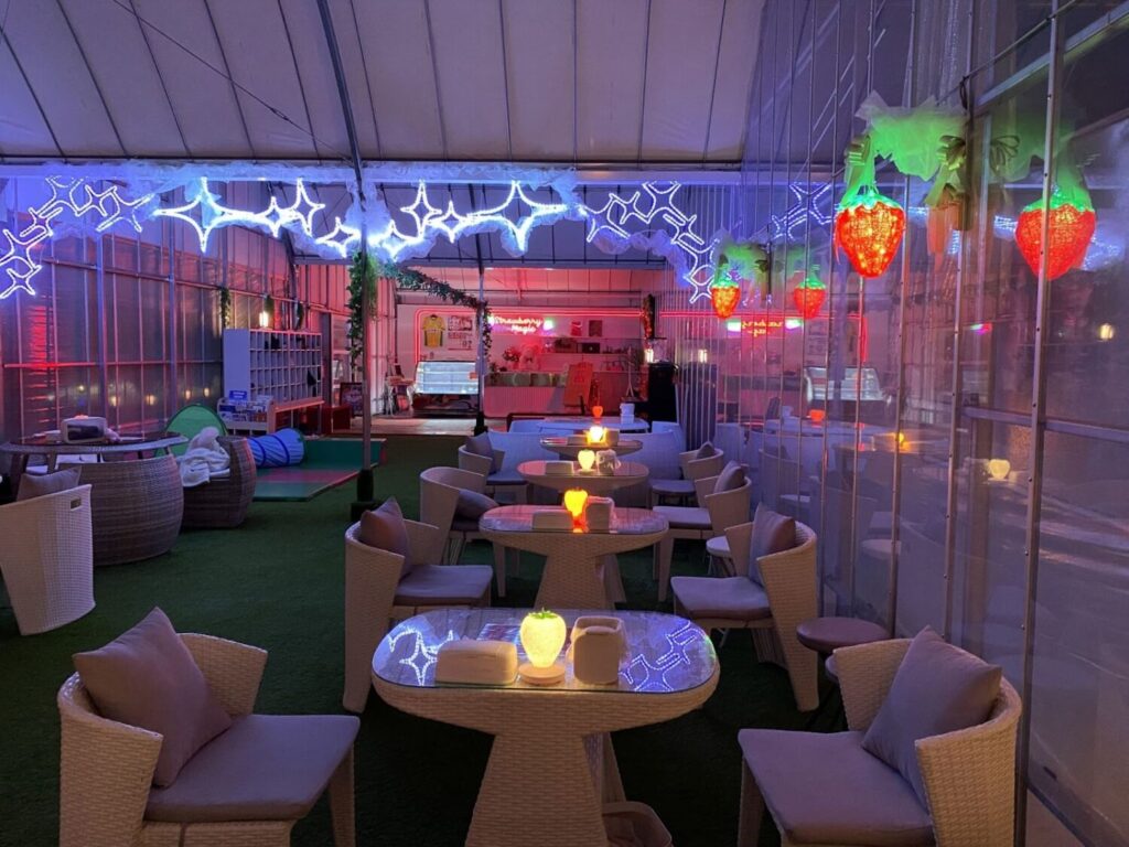 正面には、クラブのVIP席をイメージしたVIPエリアとソファーが完備され、夜の農園の雰囲気を贅沢に味わうことができます。