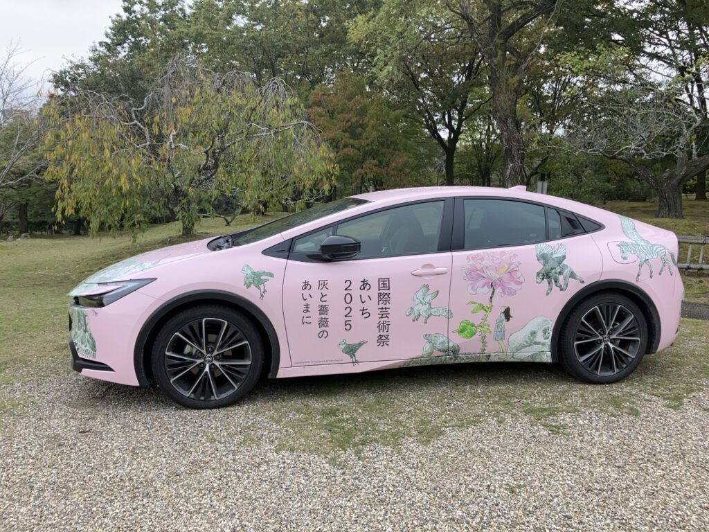 その横では、キービジュアルをまとった車がアートそのものとして場を彩っていました。