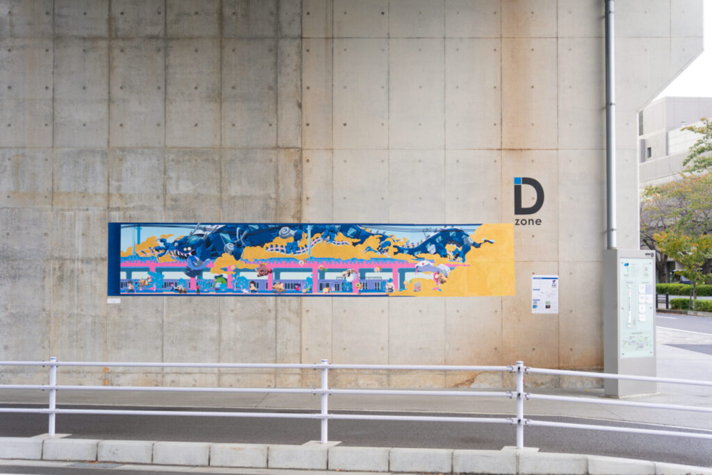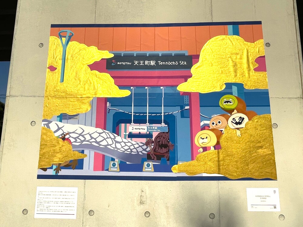 SAKANAGIさんは、相鉄線の車両を龍に見立て、天王町駅周辺や浮世絵の「東海道五十三次」の保土ケ谷宿をモチーフに過去と現在が融合した作品を展示。