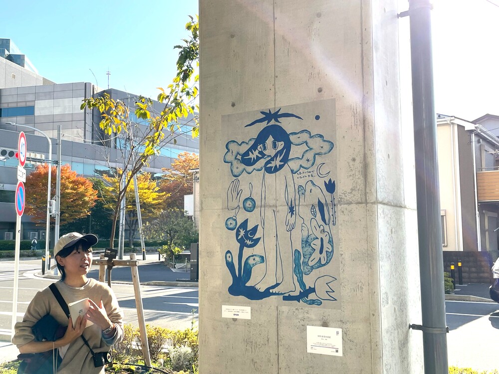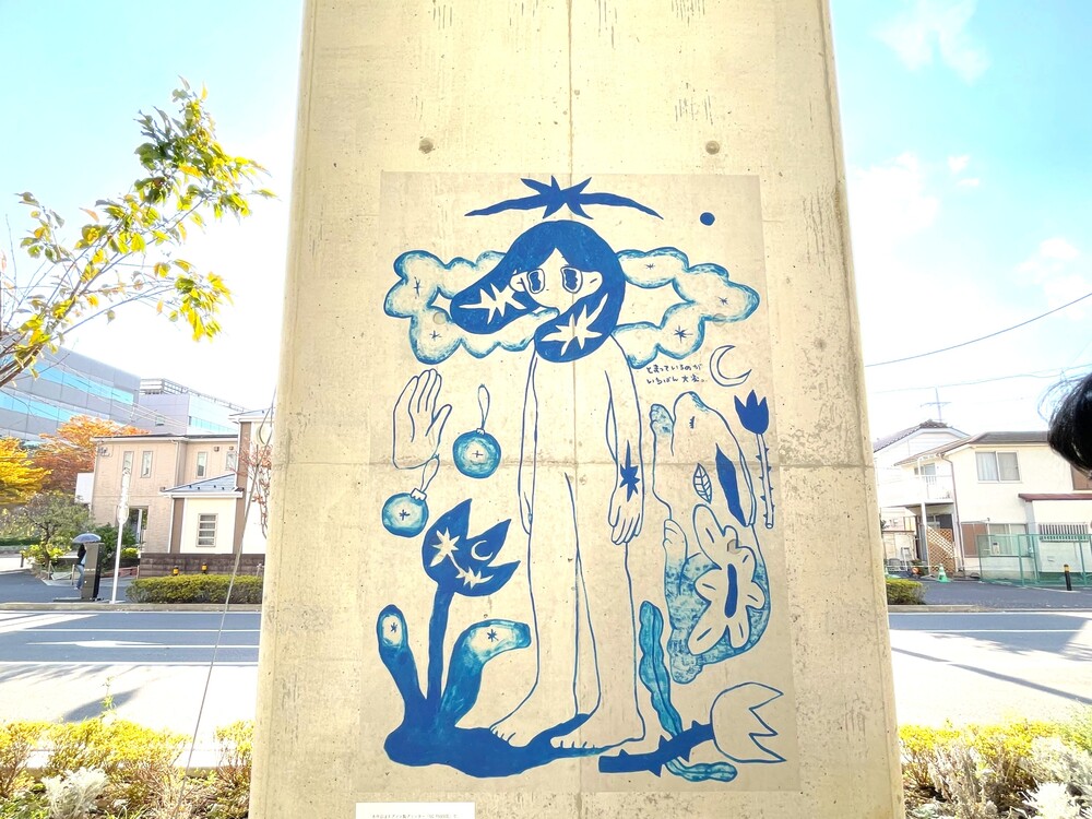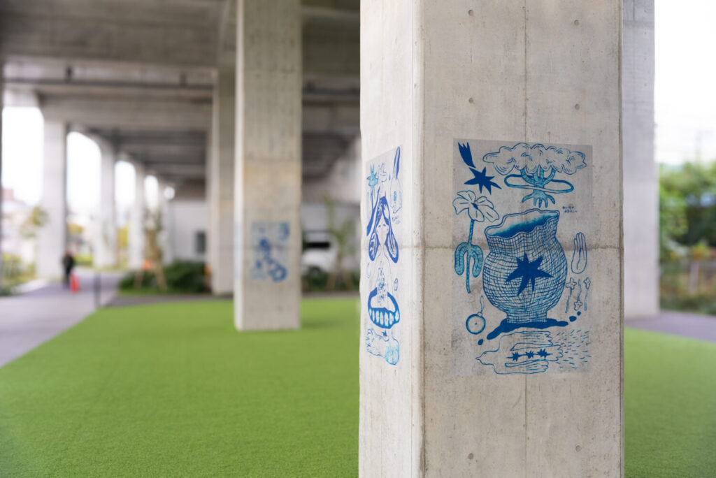 「PILE」のすぐそばの柱に描かれているのは遠峯未来さんの作品。