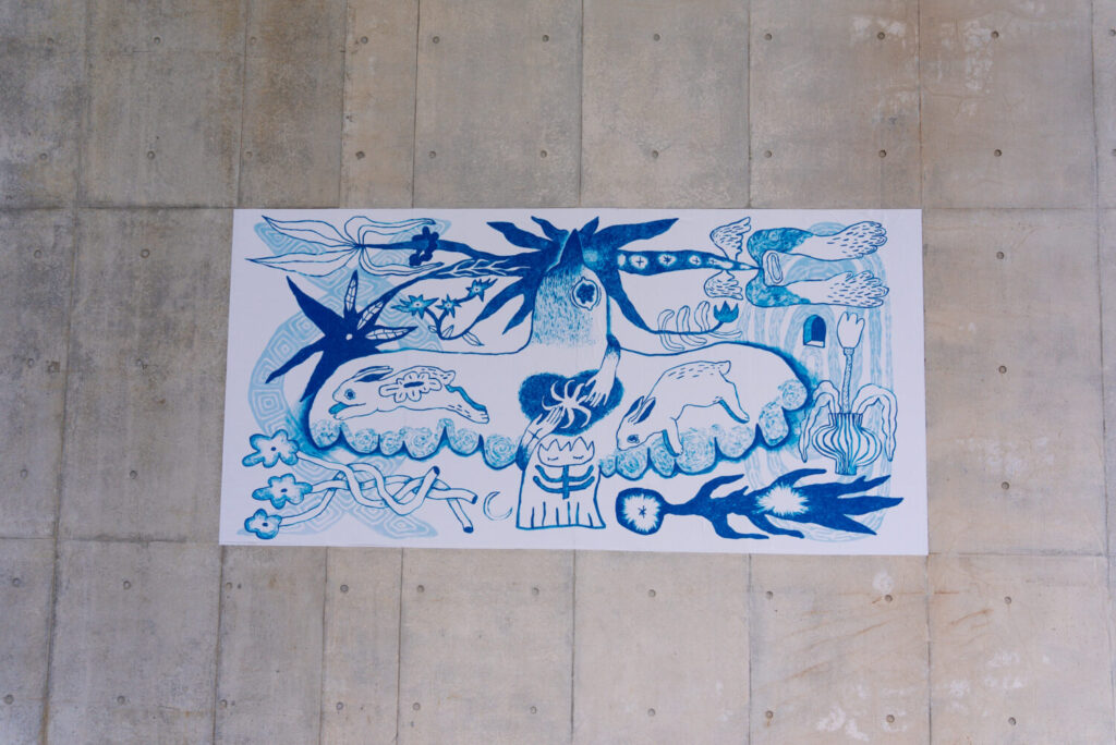 この日は別のイベント「星天qlay フェス」も重なり、すべての作品を間近で鑑賞することはできませんでしたが、青ペンのみで描かれる線画タッチの作品が印象的で、犬山さんの心の豊かさを垣間見ているような感覚になりました。