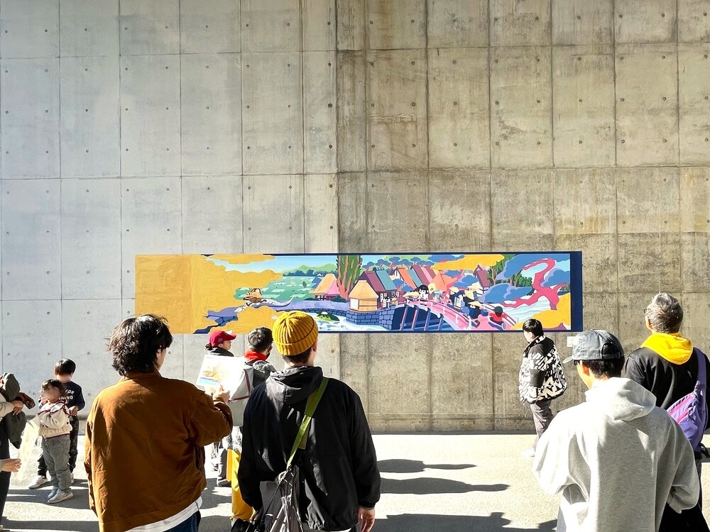 大きな壁に描かれた個性的でかわいいアートから、遠峯未来さんの作品同様にこの街に対する愛を感じます。