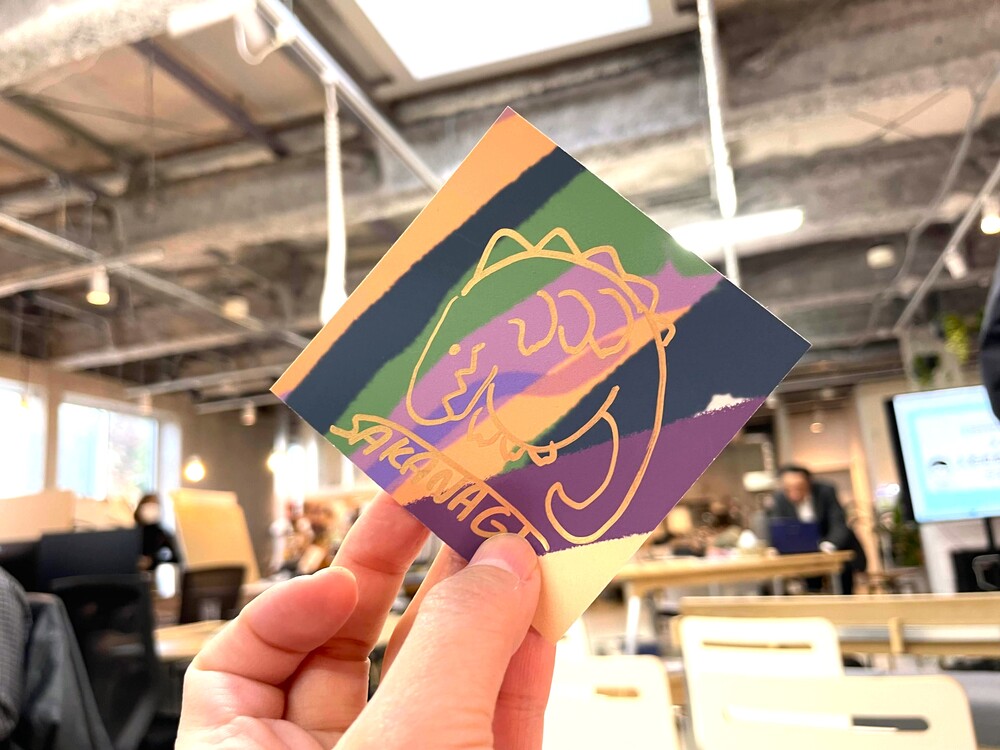 この日の参加記念にSAKANAGIさんから、作品で使用しなかったイラストのステッカーをプレゼントされるサプライズも。「アーティストガイドウォーク」に参加された方は集まって、楽しそうに選んでいました。