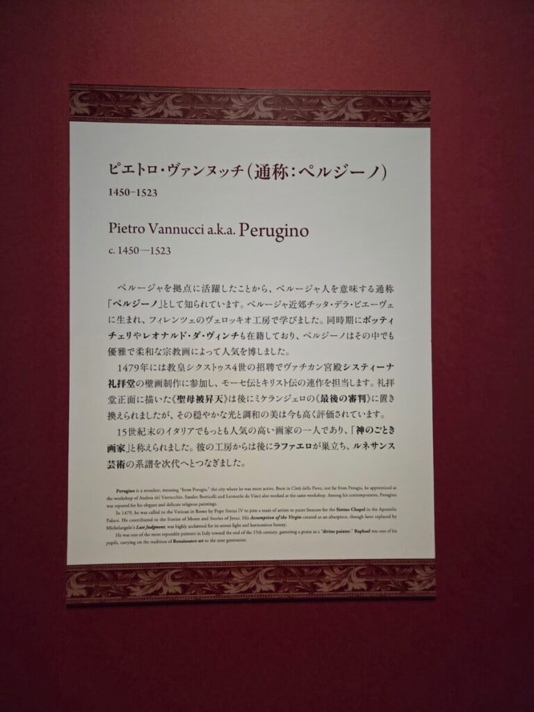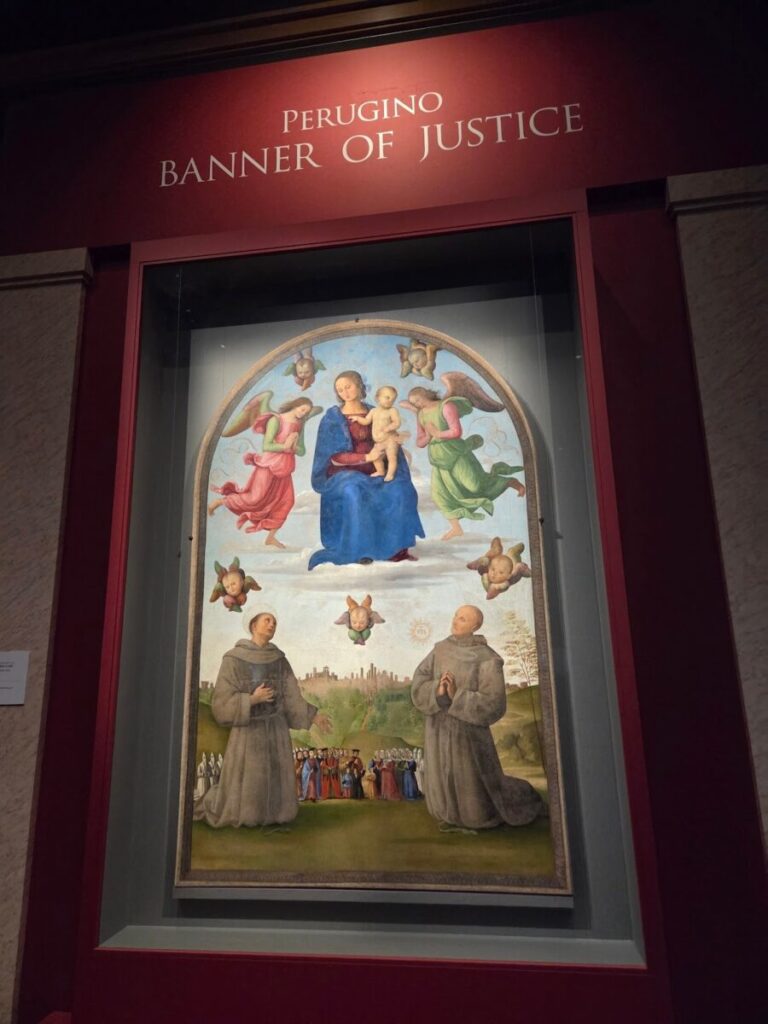 続いて展示されていたのは、ルネサンスを代表する画家であるペルジーノ作の《正義の旗》。ラファエロの師として知られる画家の作品で、イタリア国外での展示は万博が初でした。