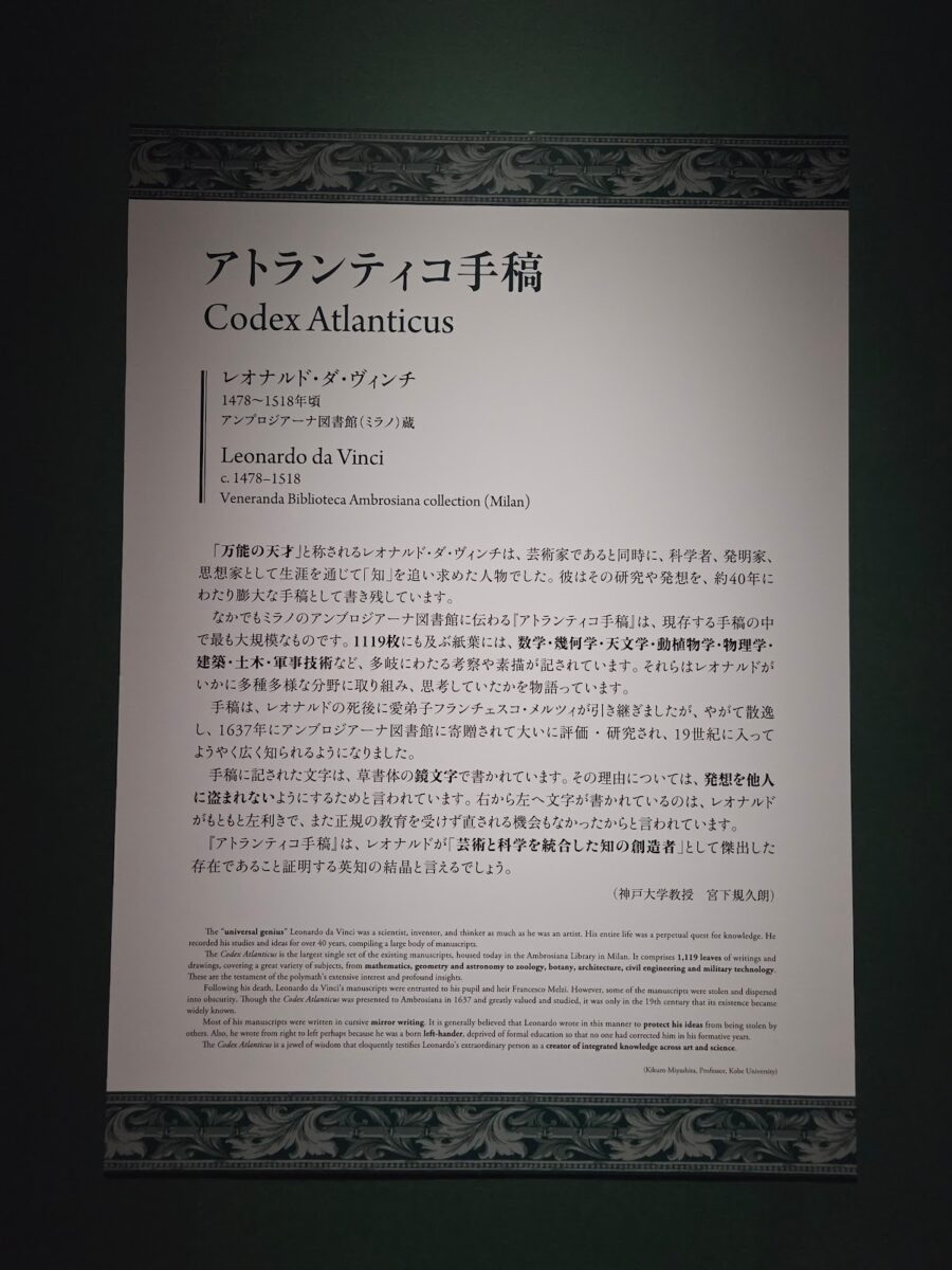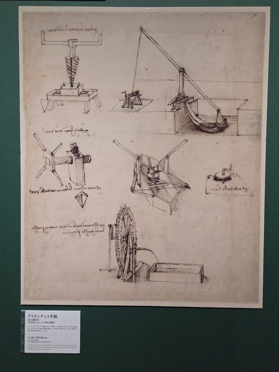 芸術・科学・数学・幾何学・天文学・動植物学・物理学・建築・土木・軍事技術・人体解剖学、その他多くの分野に精通しています。あまりの万能具合に開いた口がふさがりません。さらに今回の《アトランティコ手稿》はさらなる鬼才っぷりが見られました。