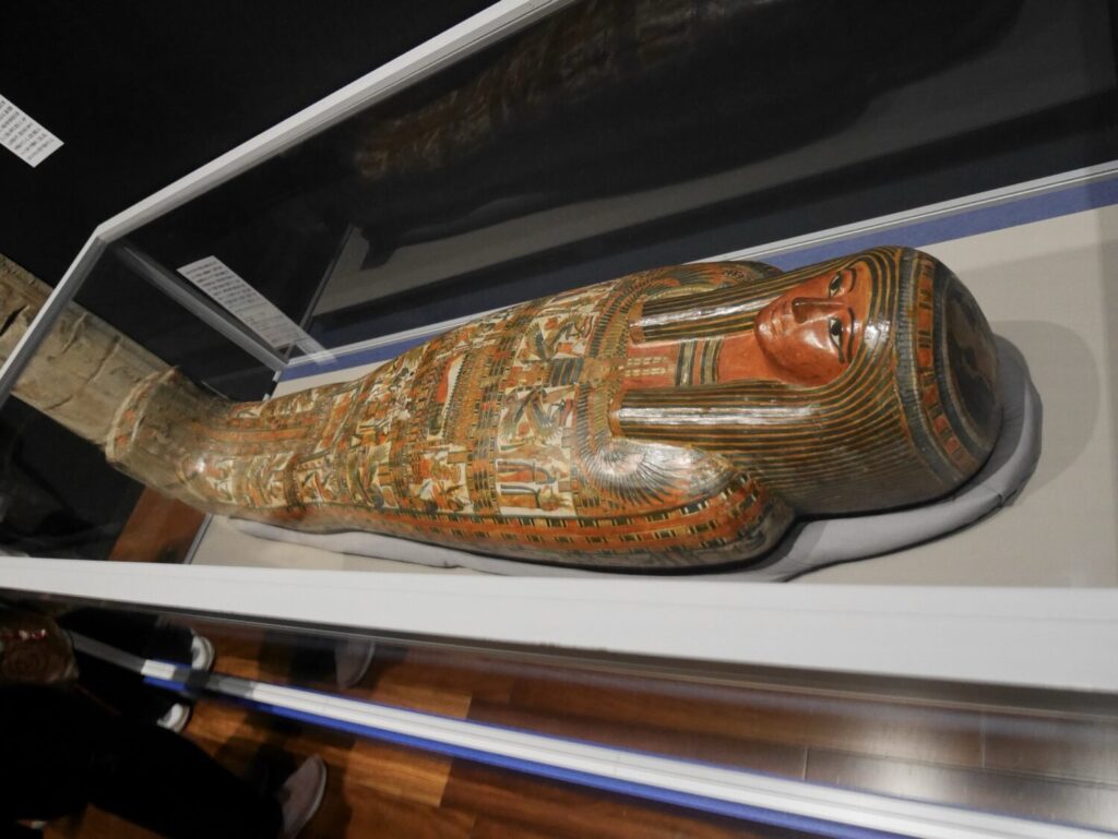 ミイラやカルトナージュの実物もガラスケース越しに間近で見ることができます。実際に目にするとその存在感に圧倒されること間違いなし。人間のミイラに加え、猫のミイラなども展示されています。