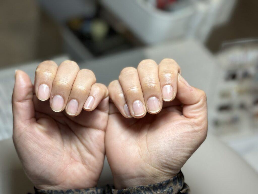 今回は私も特別に、乾燥でボロボロだった爪を少しケアしていただいた。家事と育児でケアをあまりしていなかった私の爪も、吉田さんの手にかかれば、光り輝く美しい爪へと変身。あまりの美しさに、自分の爪だと忘れるぐらい見入ってしまった。思わず「きれい」と言ってしまうほど。高い技術力が評判なのも納得の出来だ。