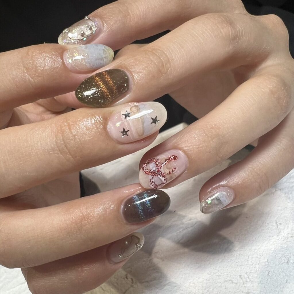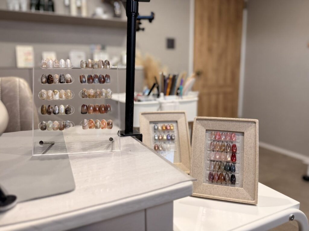独立するまでは、市内でも有名なネイルサロンに3年ほど勤め、そこでもお客様から抜群の信頼を得ていた。どんな爪をしているお客様とも徹底的に向き合う日々。「爪ってほんとに色んな形があって。また、取れやすい方もいて。どこのお店でも取れてしまうお客様が、私のネイルだと取れなかったと言ってくださった時はとても嬉しくて自信につながりました」と吉田さん。他にも「あなたのセンスが好き」と、技術はもちろん、感性の良さも褒めていただいたとか。確かに、吉田さんのサンプルを見せていただいたが、どれも感性が素晴らしく、センスが際立っていて、私も思わずサンプルの画像を保存してしまうほど。