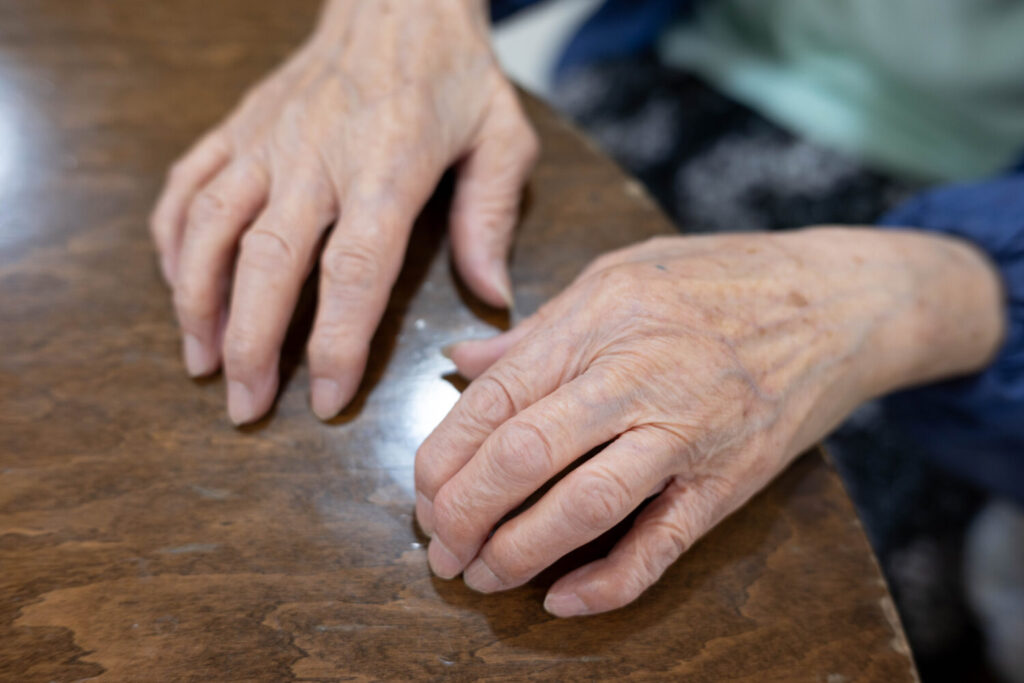 手の写真を撮らせてほしいとお願いすると、碓井さんはそっと手をテーブルの上に載せました。筆を作り、人生を切り拓き、女性たちの活躍する道を作ってきた、美しい手でした。