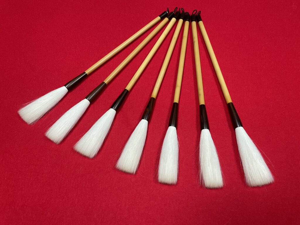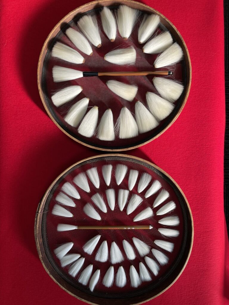 碓井さんも加藤先生から熱心に書を学びました。この頃、碓井さんは羊毛筆(ヤギの毛の筆)を得意とする工房に就職し、20以上ある筆づくりの全工程を担当するようになります。