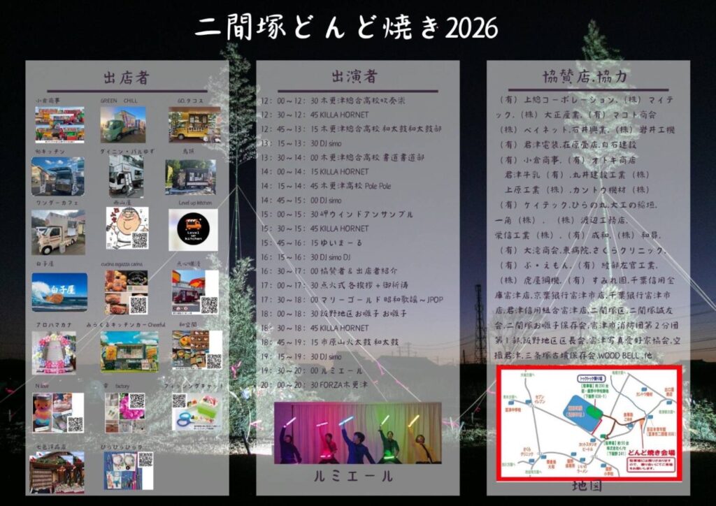 後援:二間塚自治会区・二間塚誠友会・富津市キッチンカー協会