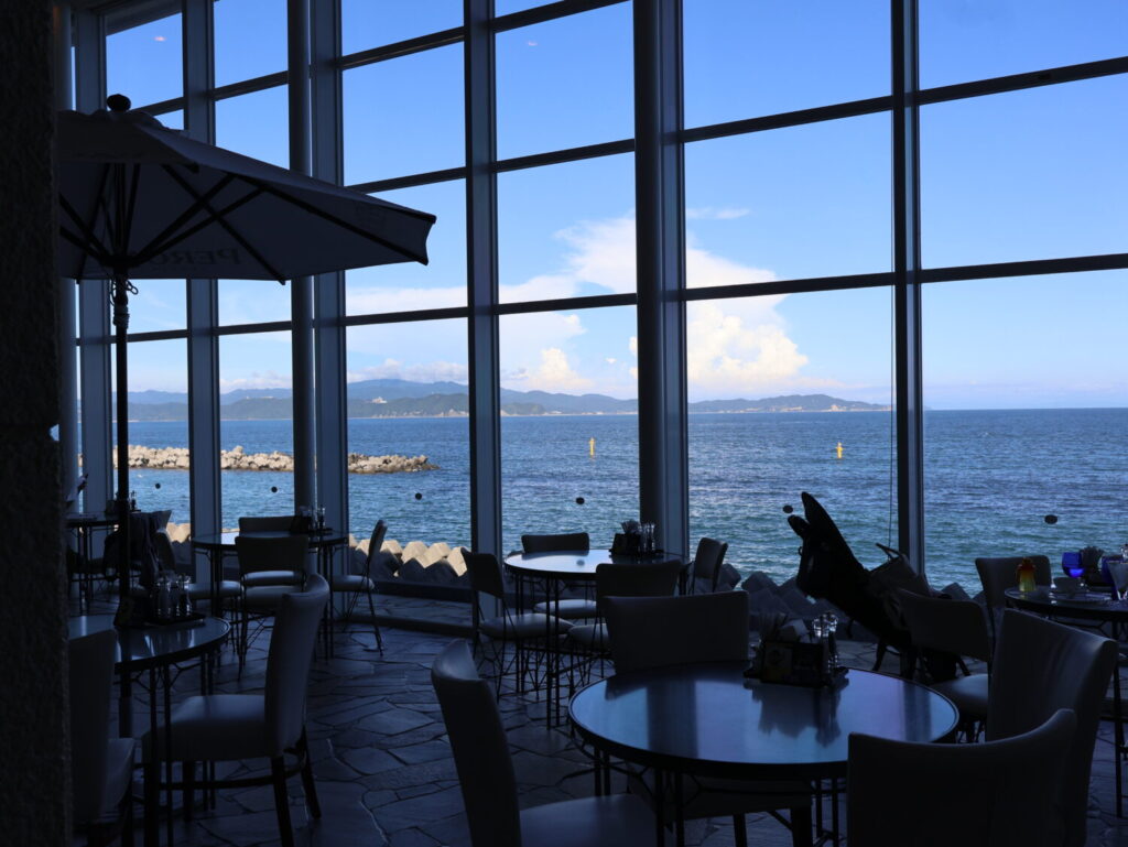 テラスカフェオーゲはとてもオープンな空間になっており、目の前には鳴門の海が広がっています。座席数も多く、目の前の絶景を眺めながらゆったりとお食事を楽しめます。テラスカフェオーゲでは、鳴門の海の幸をふんだんに使ったお料理がいただけるほか、ゴッホの絵画をテーマにした珍しいメニューや、定番の鯛の塩らぁめんを食べることもできます。お食事のオプションも豊富なので、鳴門の大自然と美味しいご飯を楽しみながら、いつまでも座っていたい空間です。