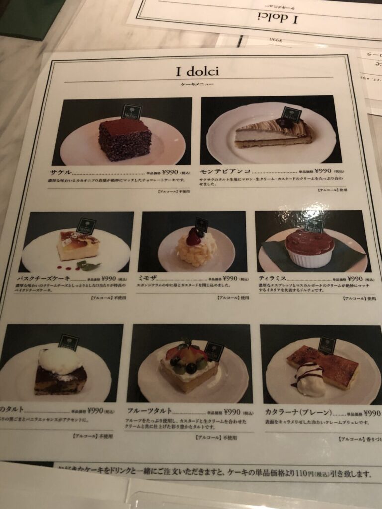 注文したのは「バスクチーズケーキ」「フルーツタルト」「カタラーナ(クレームブリュレ)」「サケル(チョコレートケーキ)」です。華やかなケーキは少ないのですが、どれもそれなりに正統派においしいといった印象です。