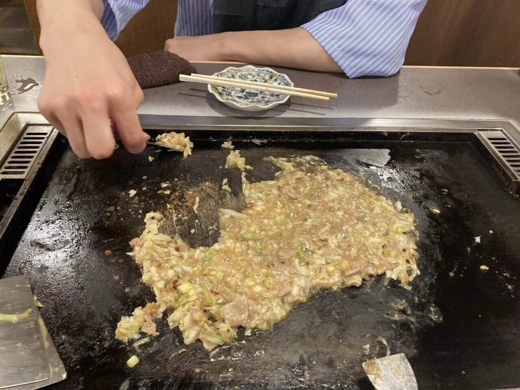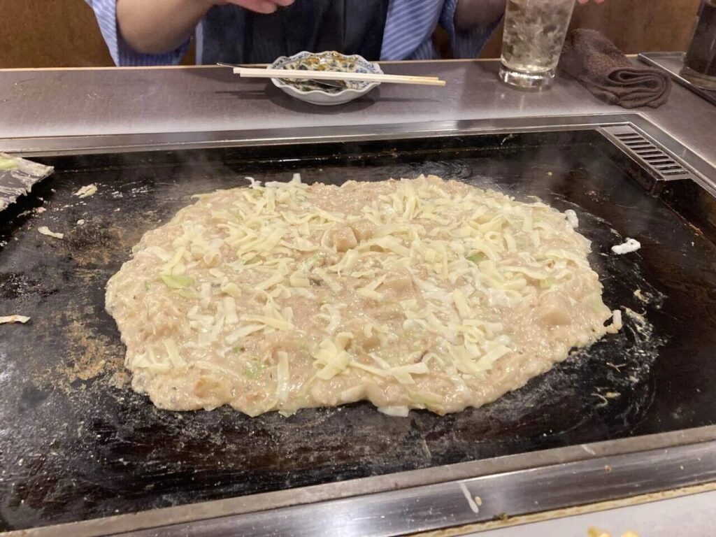 この明太子もちもんじゃは、焼き上がる過程も見逃せないんです。鉄板の上で明太子がじわじわと火を通され、香りが立ち上る瞬間は、食欲をそそること間違いなし。