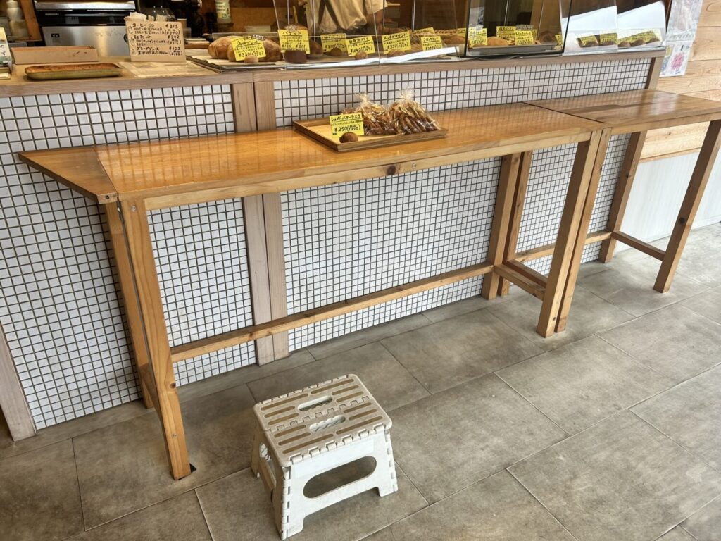 この踏み台は、小さなお子さんがパンを選んだり、お会計をするときに使います。