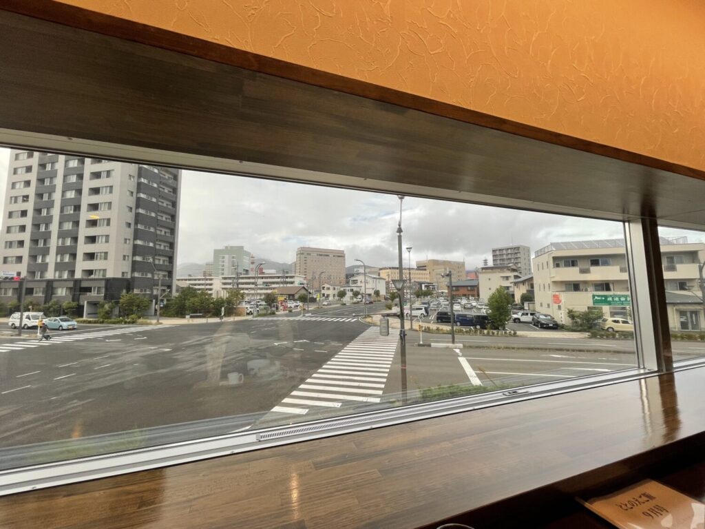 カウンター席は窓から長野市の街中を見下ろせ、一人で外を眺めながらのんびりするのにぴったり。