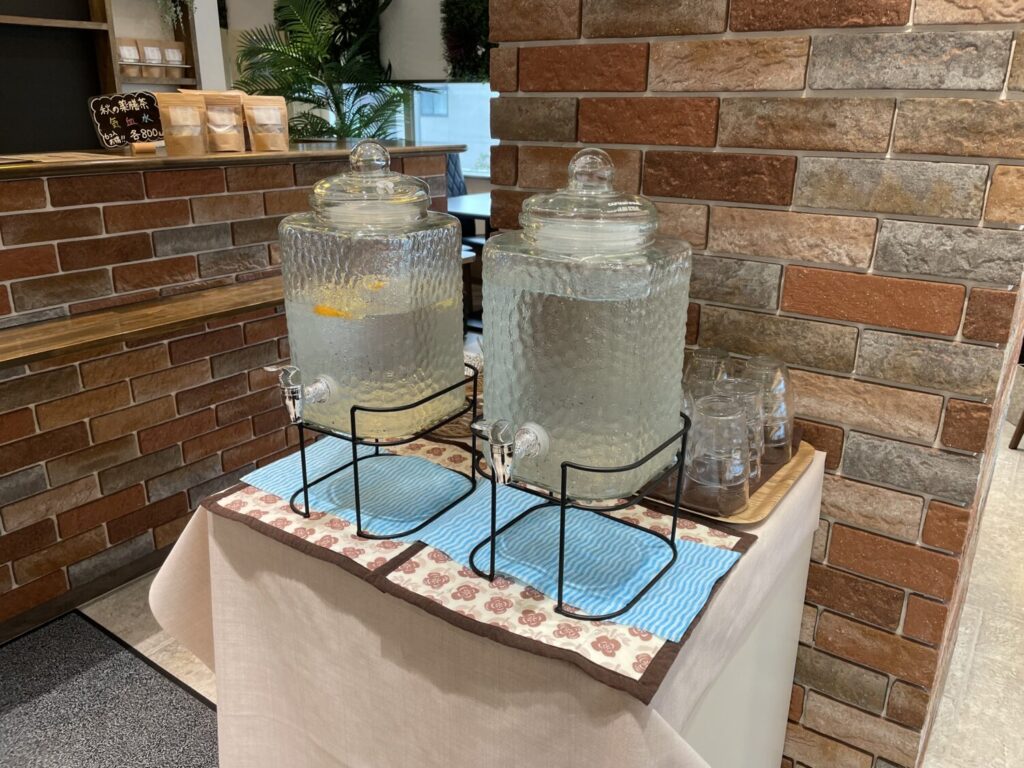 また、お水だけでなくレモン水も自由に飲めることに、ひそかに喜びを感じます。