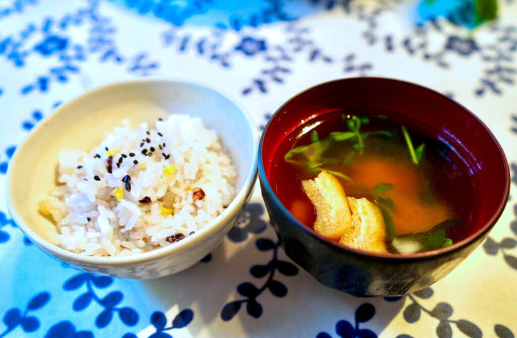次に、雑穀入りご飯とお味噌汁。