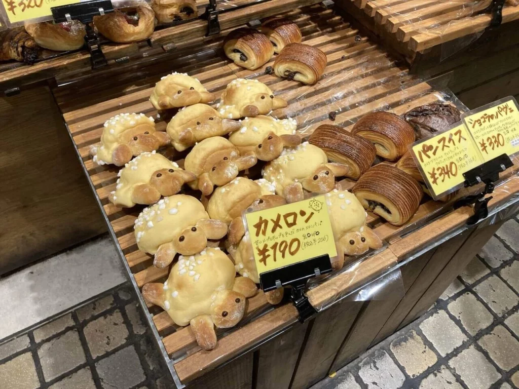 PAIN PATIの店内に足を踏み入れると、まず目に飛び込んでくるのが、かわいらしい動物の形をしたパンたち。カメの形をした「カメロンパン」や、肉球モチーフのパンなど、見た目も楽しく、食べるのがもったいないほどの愛らしさです。