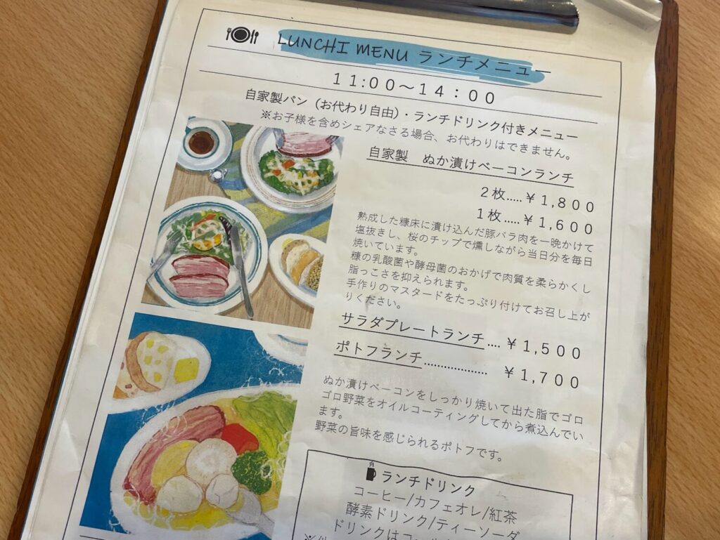 現在、モーニングタイムからぬか漬けベーコンを味わうことができるこじか食堂。