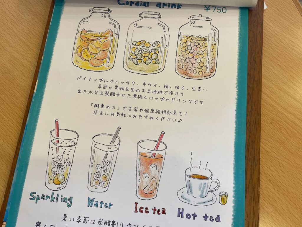 ランチタイムに訪れた私が注文したのは、「自家製 ぬけ漬けベーコンランチ」。そこで、ドリンクとして選んだのは、「酵素コーディアルドリンク」です。