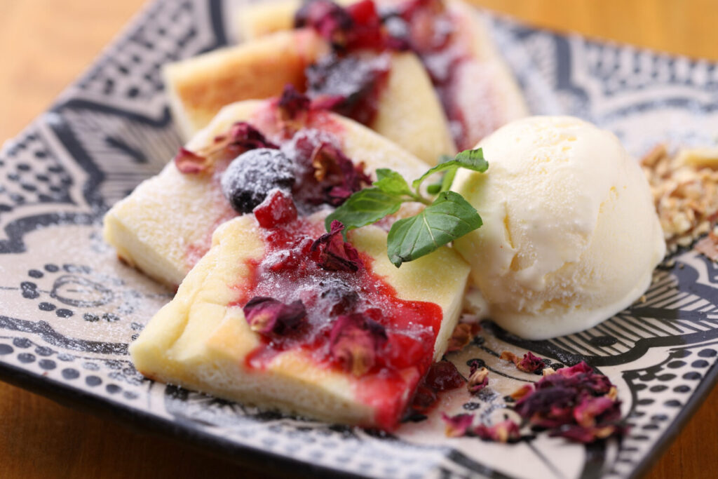 与野店と大きく異なるのは、カフェメニューが充実していること。専属パティシエのかなんちーさんがモロッコのパイ風クレープ「ムスンメン」を始めとする、魅力的なモロッコカフェメニューを開発しました。