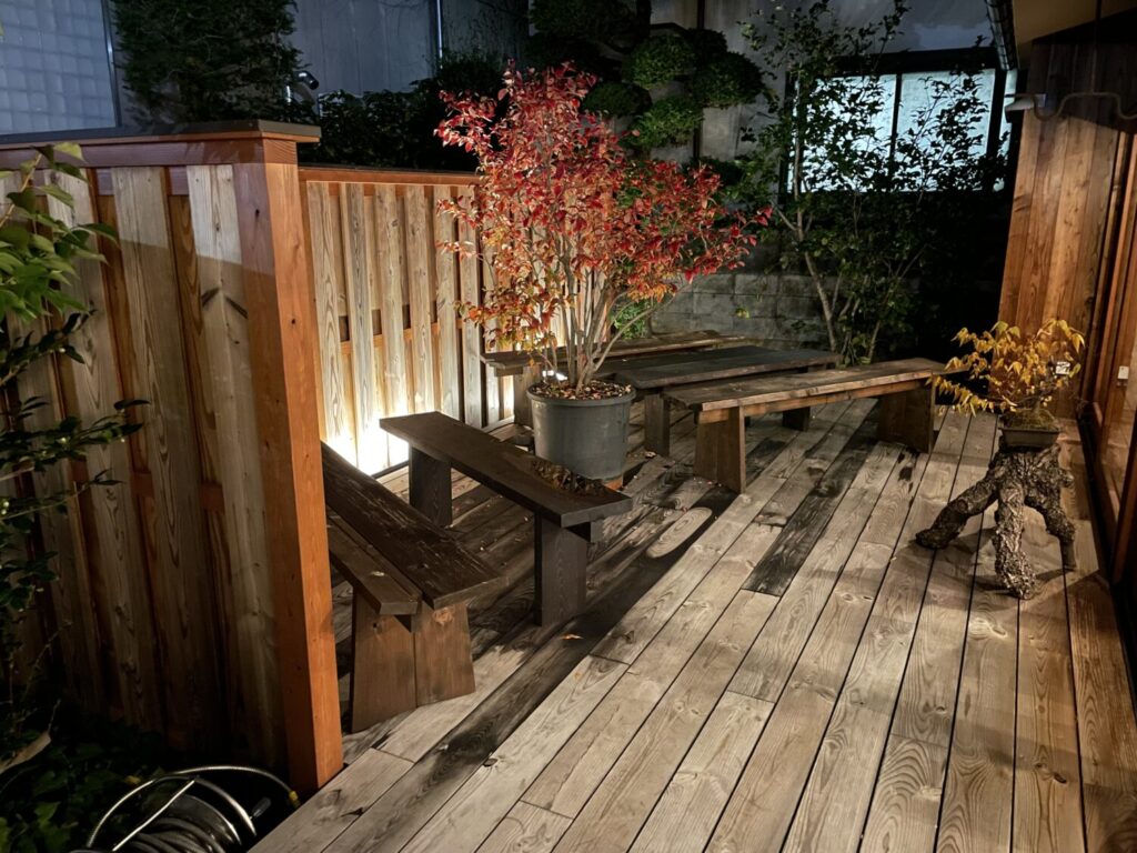 店内のやわらかな灯りも夜になるとさらに映えます。