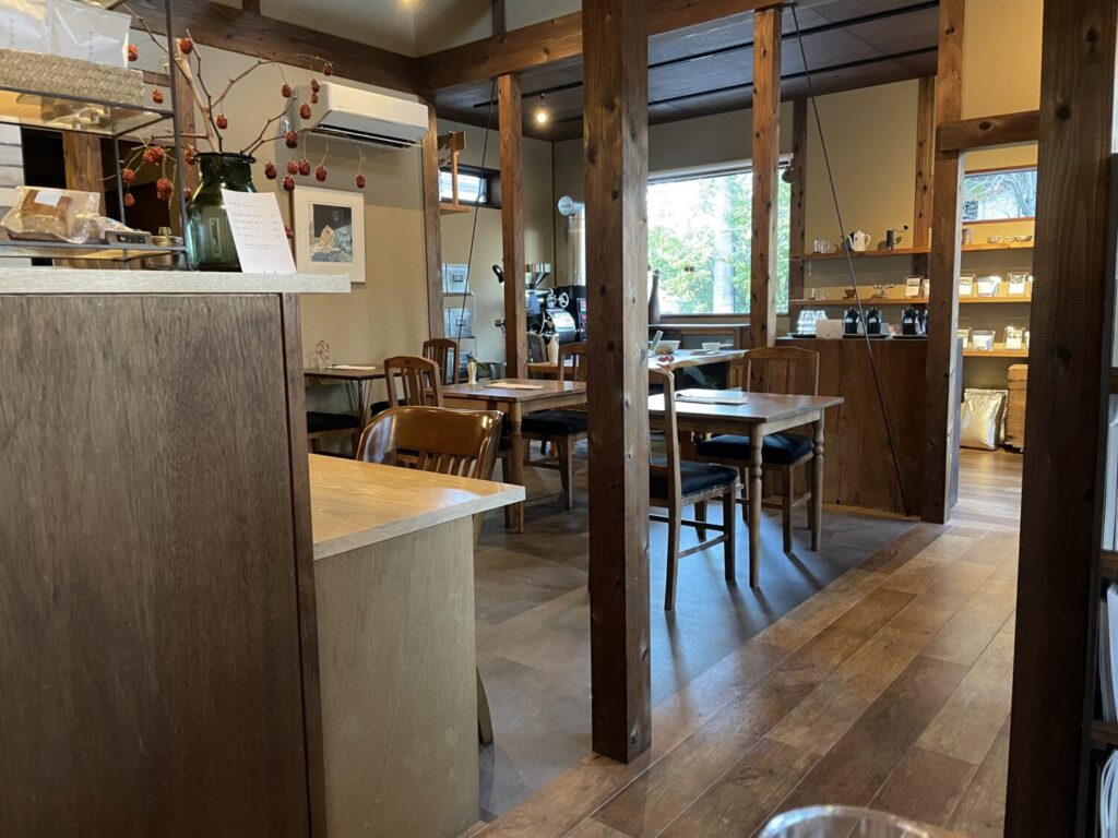 穏やかな店内のBGMや木の温もりが感じられるインテリア、窓から見える紅葉した庭の風景が全て優しく穏やかで、統一感があります。