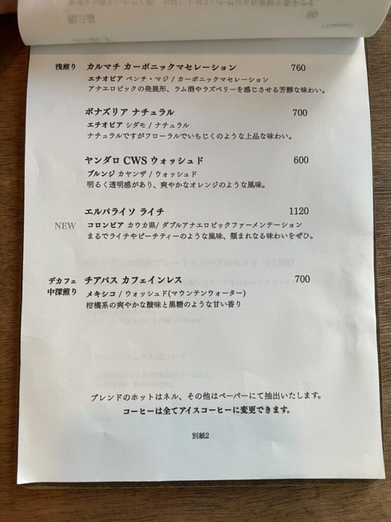 見てみると、コーヒーのメニューが豊富な他、アルコールもあります。