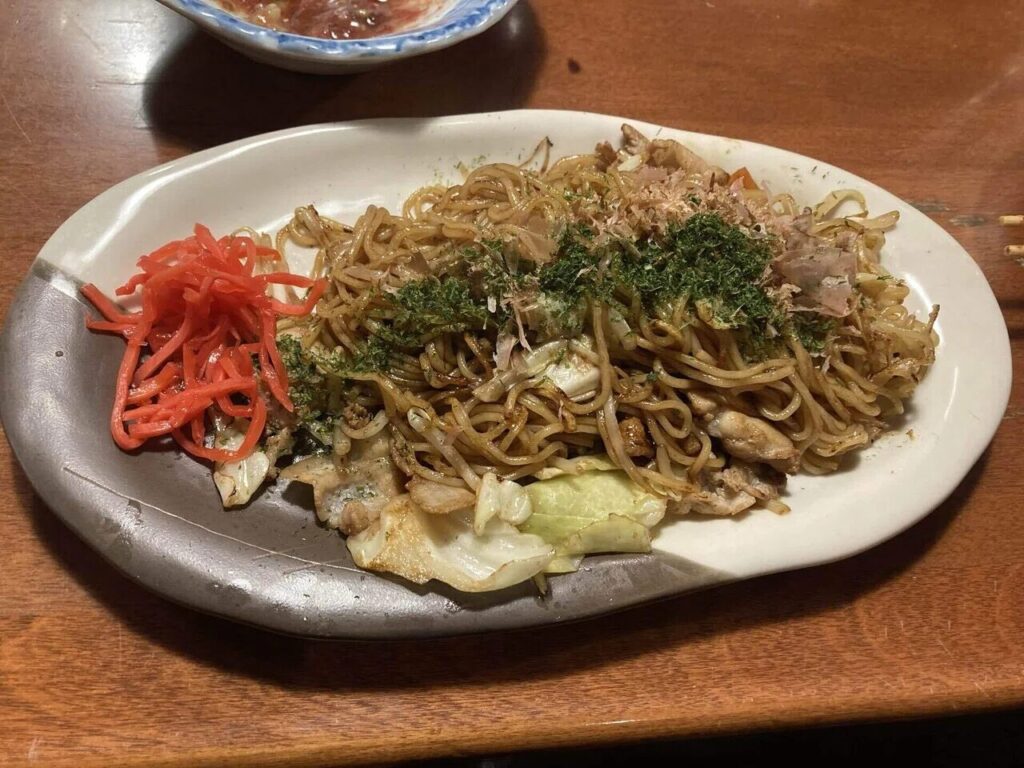 〆に頼みたいのが「夜店のソース焼きそば」。しかし、ます家の焼きそばは、ただのB級グルメではありません。