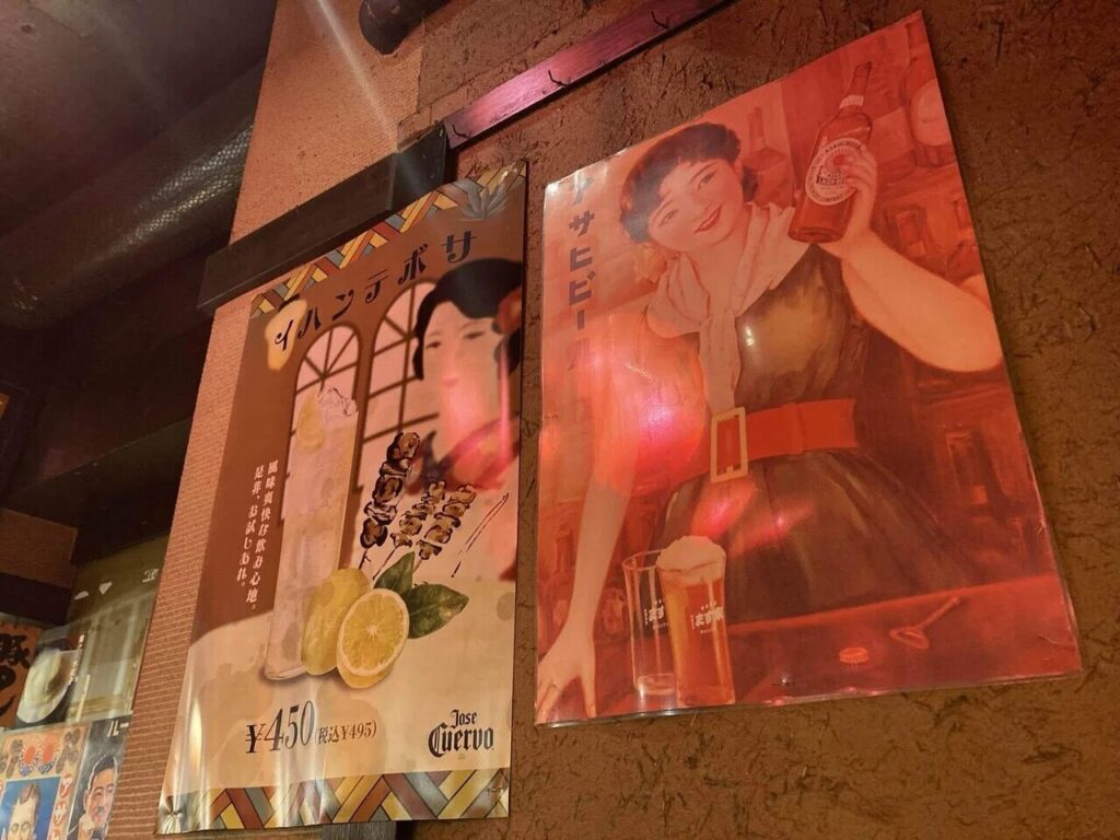 「ます家」の魅力は料理だけではありません。店内は木の温もりを感じるレトロな空間で、昭和のポスターやアンティーク調の照明が、どこか懐かしく、ほっとする雰囲気を醸し出しています。