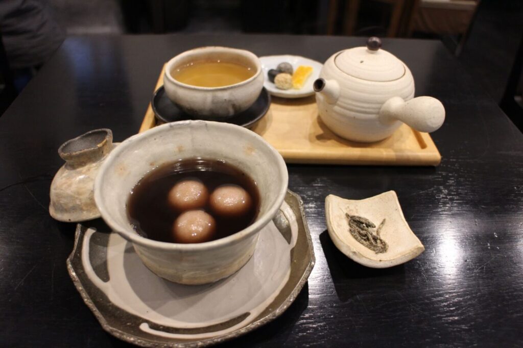 こちらは赤玉ぜんざい(税込850円)と刀豆茶(税込500円:茶菓子つき)です。