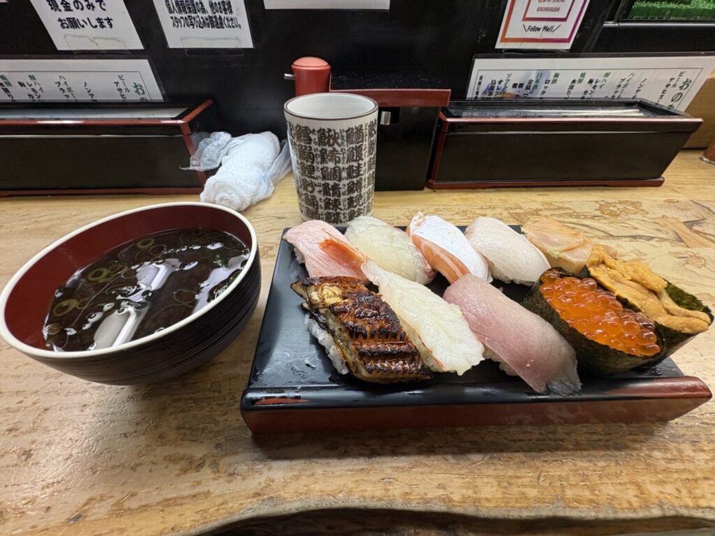 ウニ、イクラ、ウナギ、トロといった豪華なネタが一通りそろい、しかも一貫ずつの完成度が高い。価格だけでなく、内容面でも納得感のあるメニューでした。