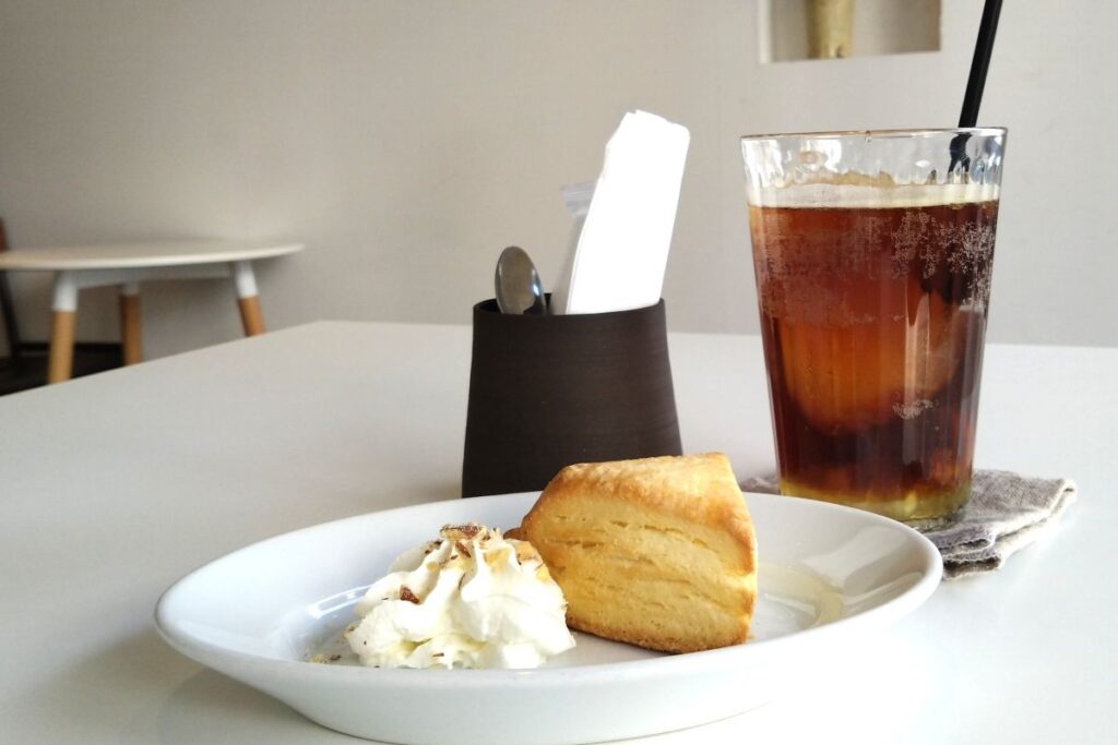 店内ではモーニングやランチのプレートがいただけるほか、スコーンやアクセサリーの販売もしています。