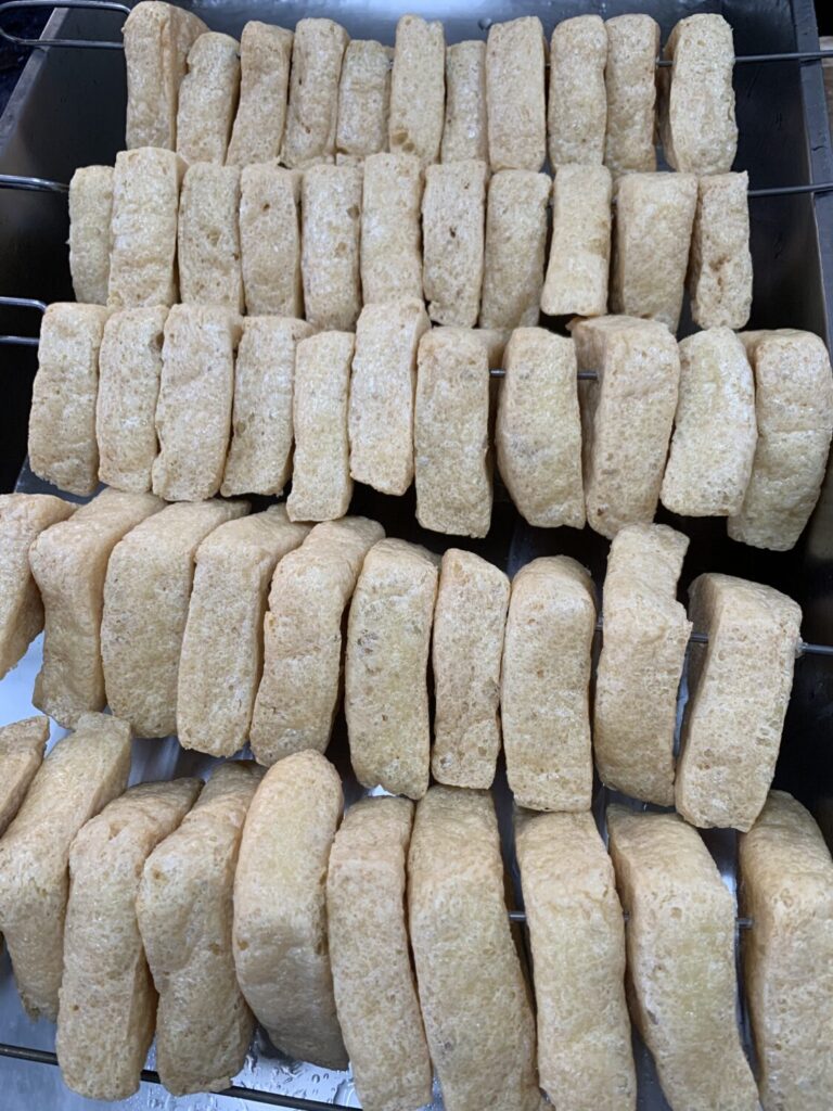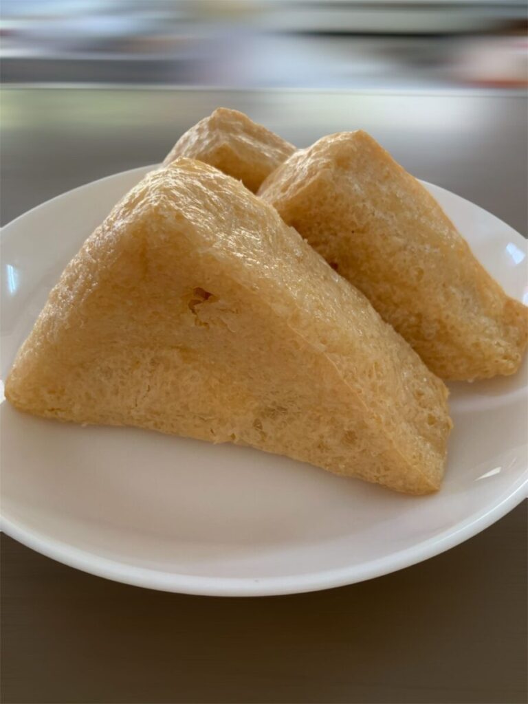 橋本商店の三角油揚げは、厚揚げとは違い、外がカリカリで中がふわふわしています。
