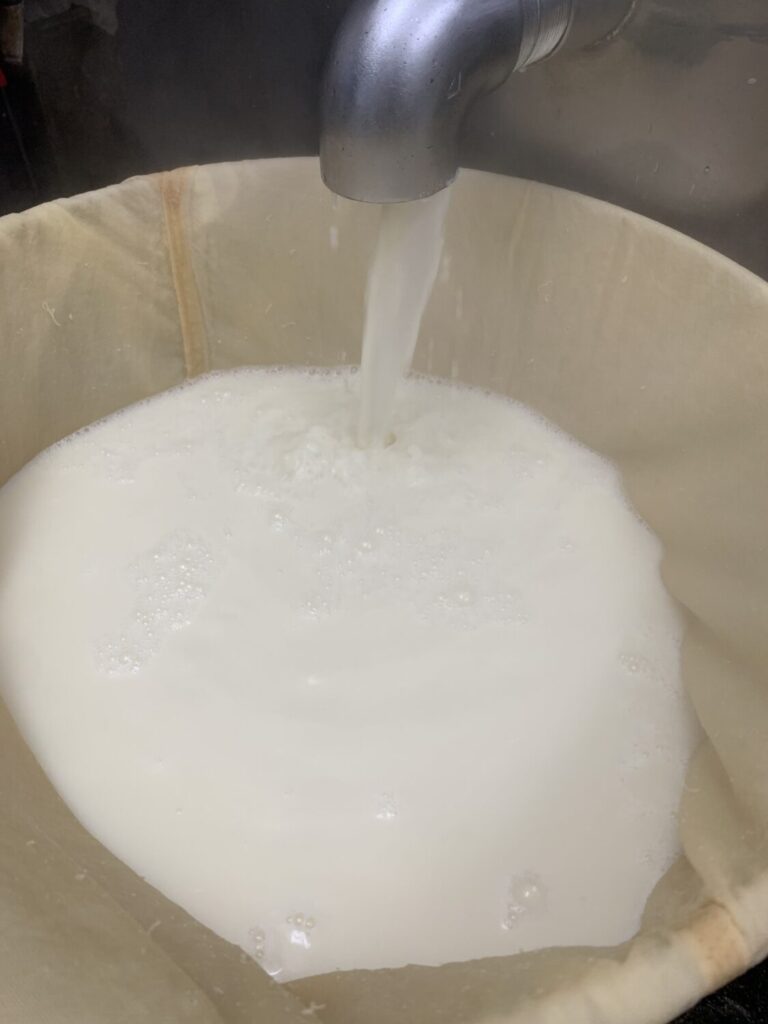 店舗では、毎日同じ豆腐が出来るように日々の気温や天候によってにがりの量を調節しています。
