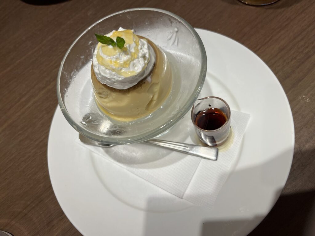 こちらがはちみつプリン。はちみつをプリンの上からかけます。やさしい味わいで、ペロッと食べてしまいました。