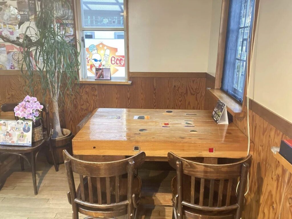 店内は以前ラーメン店だった名残が残る広々とした空間で、カウンター席やテーブル席がゆったり配置され、イートインでも落ち着いて過ごせます。