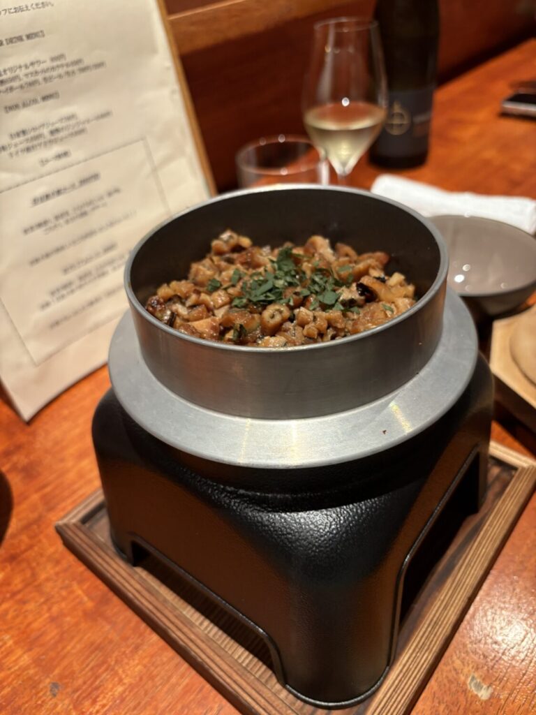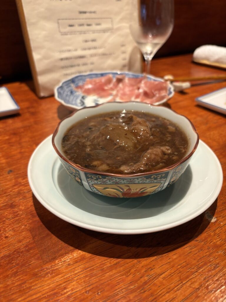 家庭料理の延長ではなく、「肉じゃが」という料理を分解し、再構築した一皿という印象です。ワインを合わせることで、脂の重さが整理され、後味がすっと軽くなりました。