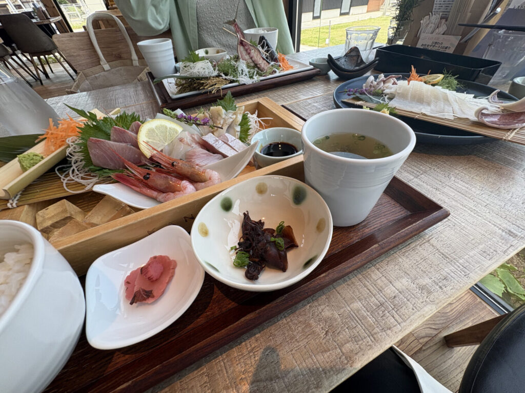 添えられるごはんや汁物、小鉢も主張しすぎず、主役であるお造りを最後まで楽しめる定食構成です。