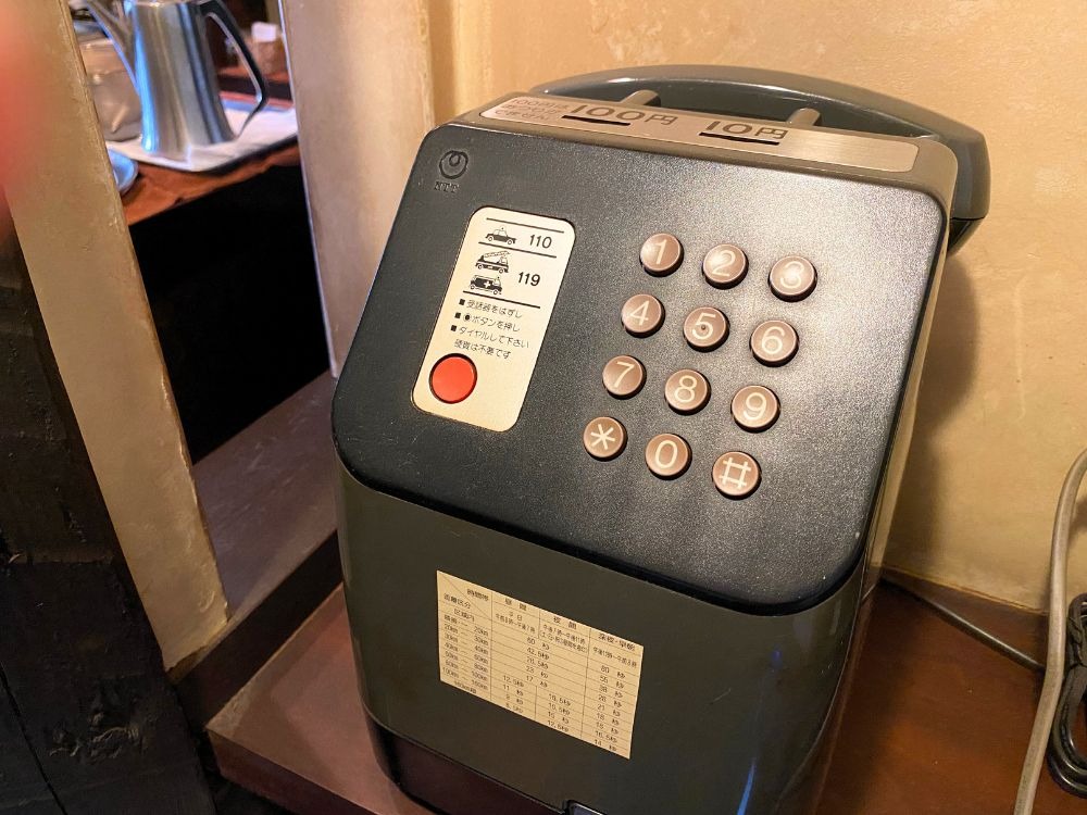 中でも印象的なのが、昭和の暮らしを感じさせる道具たちです。壁に掛かった柱時計や電話機は、今も実際に使われておりお店の日常に溶け込んでいます。