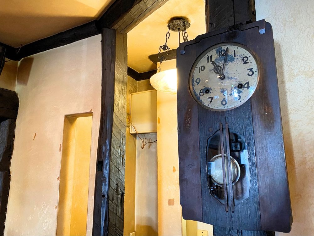 「ボーン、ボーン」と店内に響く時計の音が、空間に馴染みゆったりとした時間の流れを感じさせてくれます。