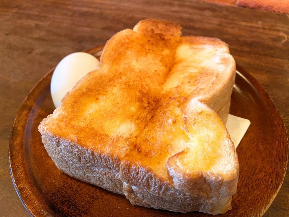 そんなブレンドに合うのが、ゆで卵が添えられた厚切りトースト(税込450円)。厚めに切られたトーストは、表面が香ばしく中はふわふわで、ボリュームがあるのにリーズナブルです。
